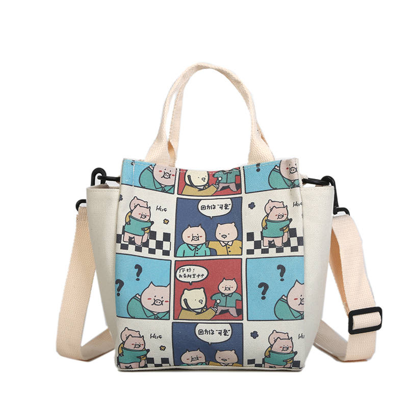 2019 Ins fashion Korean style cartoon printing canvas messenger tote bag with logo custom