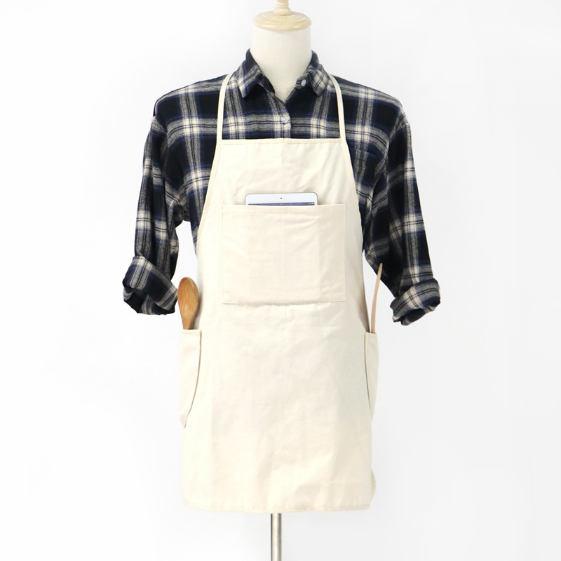 Amazon Hot Sale Custom Logo Simple And Lightweight Cotton Apron with Large Pocket