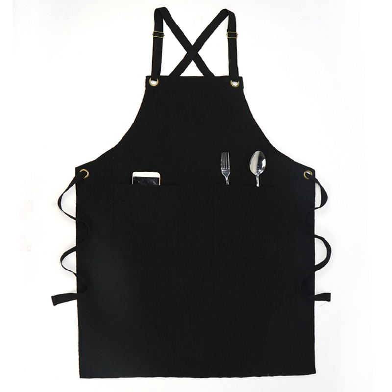 Black Polyester Cotton Canvas Thicken Wear-resistant Kitchen Cooking Apron Form China Supplier