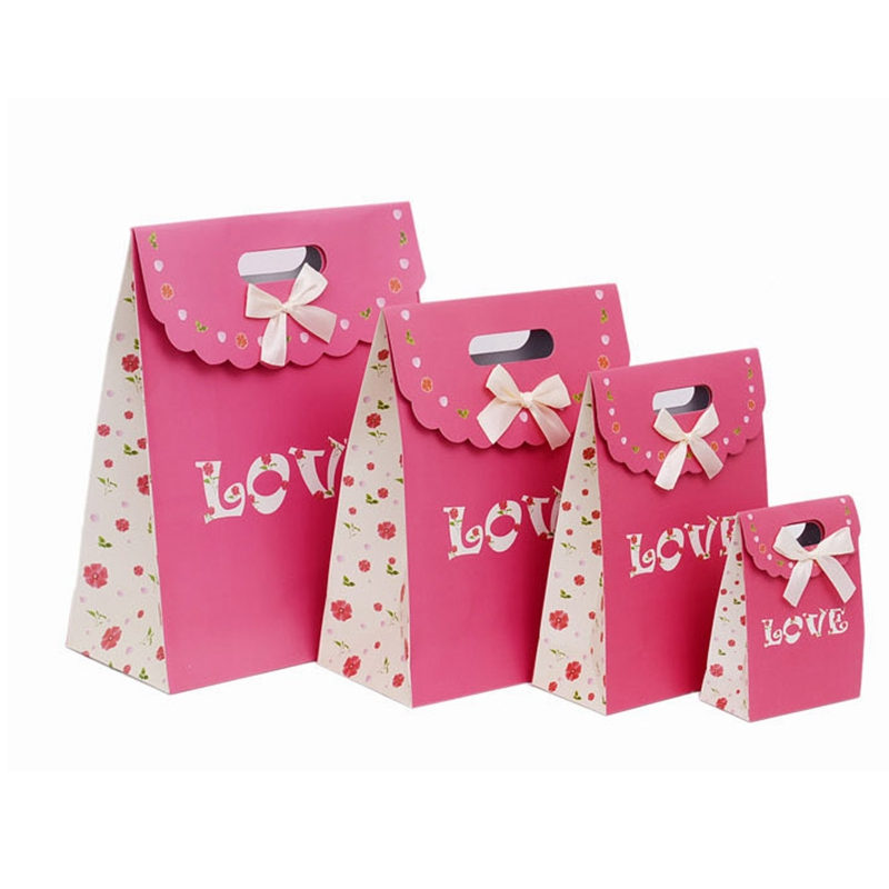 Custom love christmas pink paper small gift bags with die cut handle
