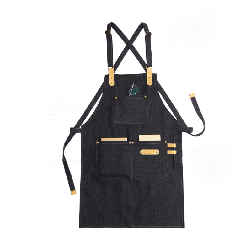 Customized restaurant coffee shop leather shoulder strap denim apron unisex home work apron