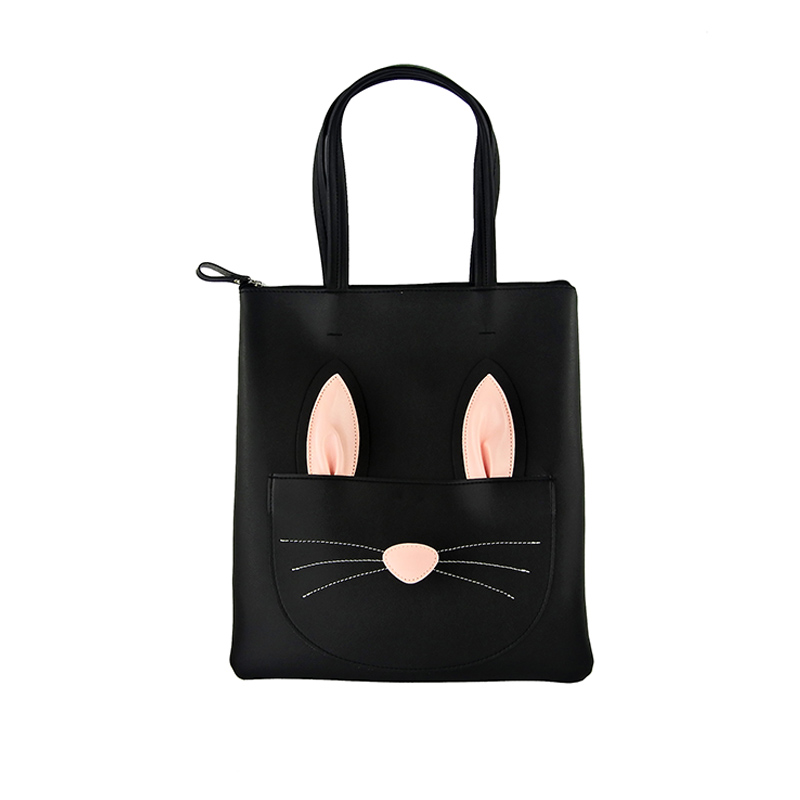 Cute cartoon pu leather large zipper shoulder shopping tote bag for ladies