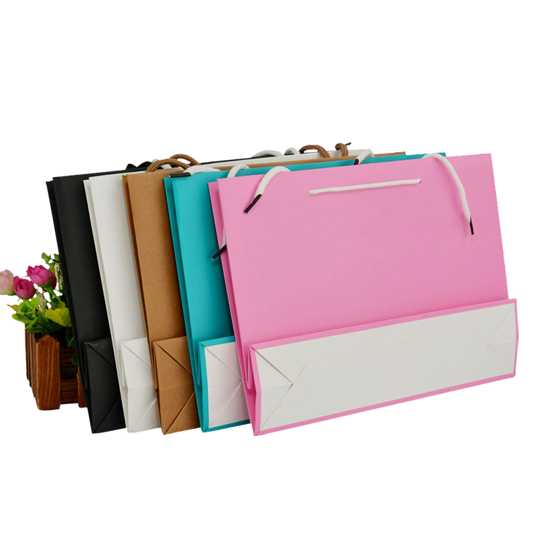 Flat paper handle customized design shopping gift printed kraft paper bag