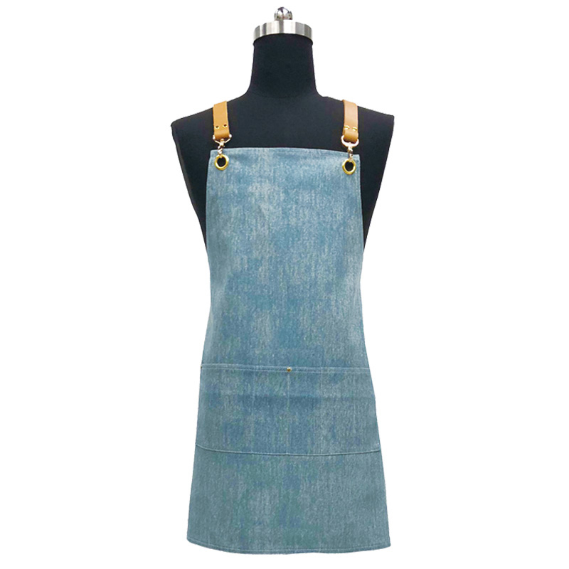 High-grade Light-colored Ladies Denim Apron with Leather Strap