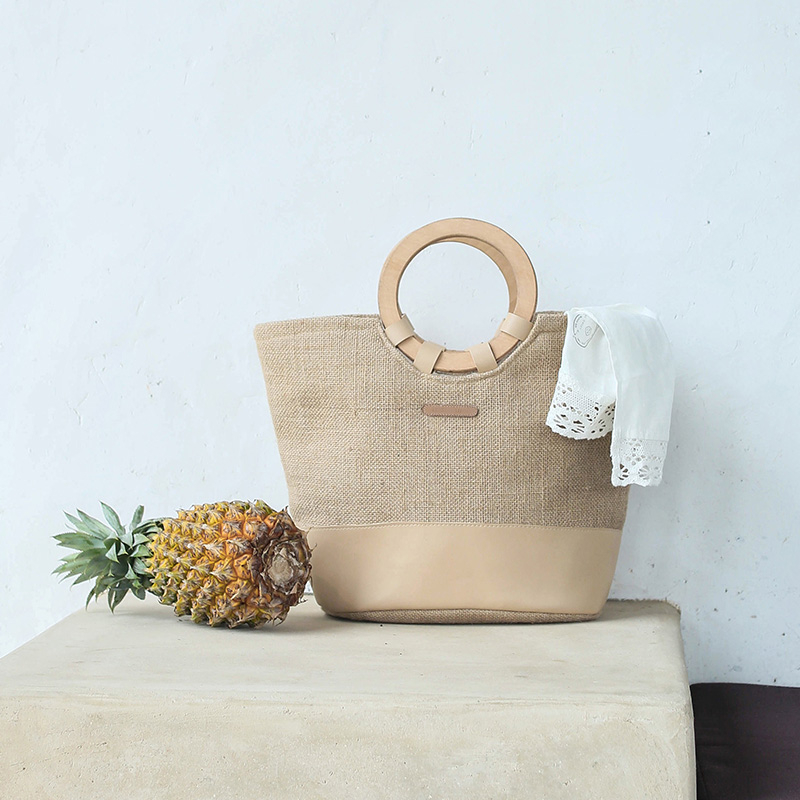High grand brand new eco friendly breathable linen tote shopping bag with wood handle