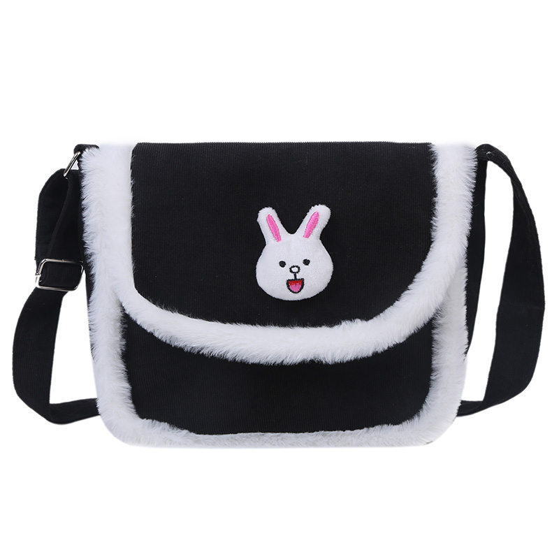 Winter warm large capacity velvet fabric ladies messenger bag cute cartoon canvas bag